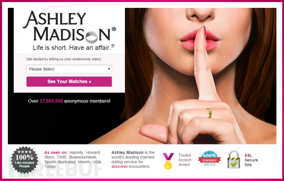 黑客入侵AshleyMadison.com网站,泄露3700万用户数据 AshleyMadison.com(以下简称ALM)是一家为已婚人士提供交友、约会服务的网站,鼓吹“人生苦短,及时行乐”(Life is short. Have an affair)。日前该网站大量用户数据被公布于网上,并且黑客称已经入侵了该网站,盗取了用户的数据库、公司财务数据等信息。 对此次事件负责的黑客/黑客团队名叫The Impact Team,目前已经在网上公布的是Avid Life Media(ALM)的一些内部敏感数据。这家位于加拿大多伦多的公司不仅拥有AshleyMadison.com,还拥有Cougar Life和Established Men这两家类似的交友约会网站。