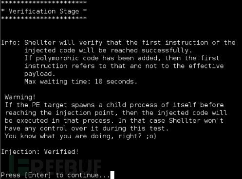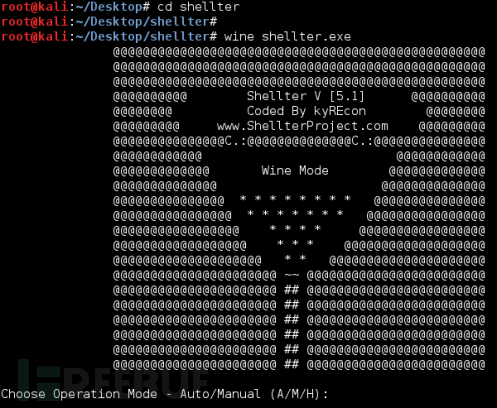 4.从终端启动shellter wine shellter.exe[/url] 5.键入“A”启用自动模式: